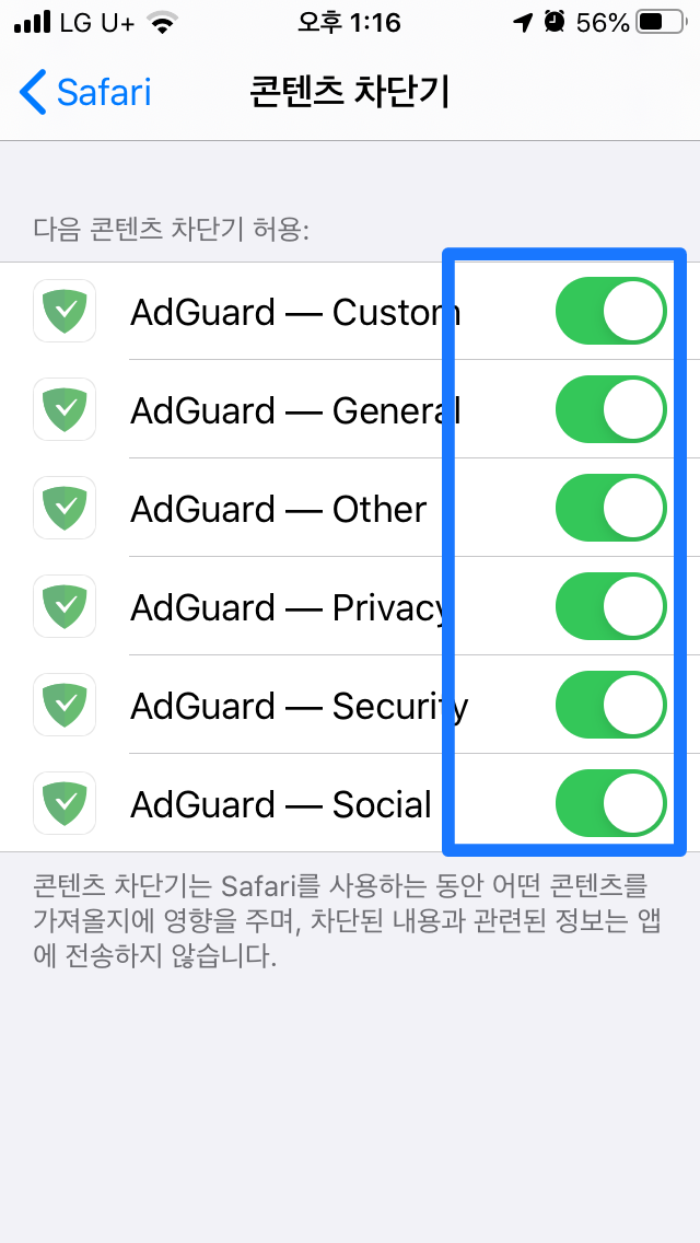 Safari 브라우저를 위한 최고의 iOS 광고 차단기. AdGuard는 Safari 내에서 모든 종류의 광고들을 멸절시킬 수 있으며, 개인 정보를 보호하고, 페이지 로딩 시간을 줄여줍니다. iOS용 AdGuard의 광고 차단 기술은 동시에 여러가지 필터가 동작하는 동시에 최고의 필터링 품질을 제공합니다.