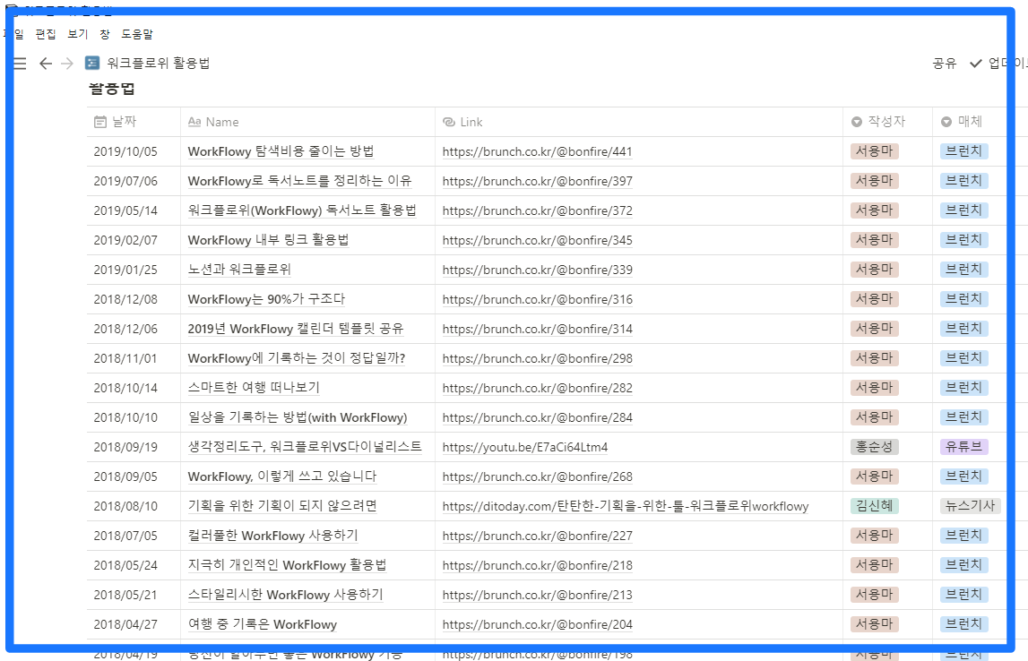 <워크플로위 글을 모아 노션 작성 후 웹으로 공개된 모습>
