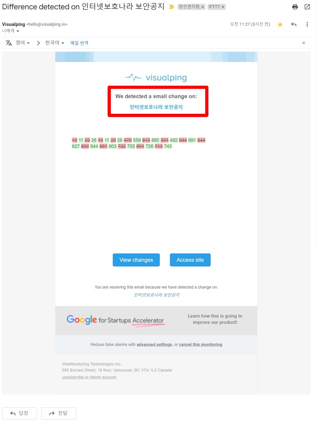 visualping.io 조회수의 차이점 때문에 메일 본문 내용의 내용이 빈약해 보인다.