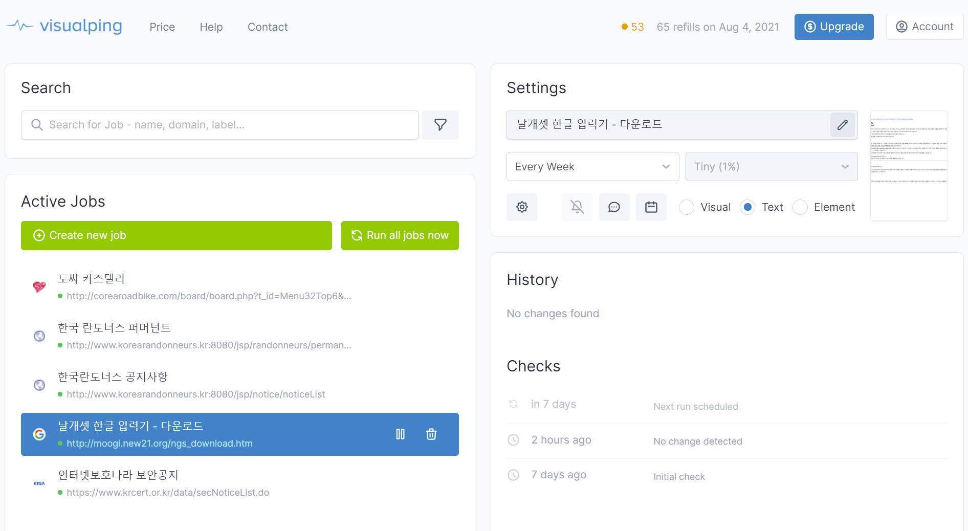 웹페이지 컨텐츠 변경 유무 모니터링 사이트 소개