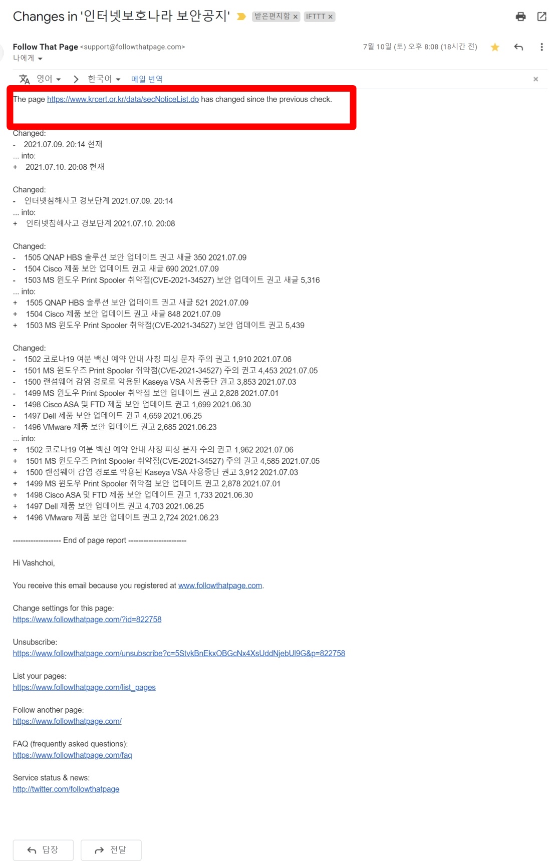 ▶ 사용 목적: 웹페이지의 변경된 컨텐츠 알림 기능을 해당 사이트에서 제공하지 않을 때 사용