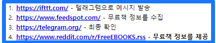 https://www.reddit.com/r/FreeEBOOKS.rss  을 바로 ifttt.com에 연동하지 않는 것은 ifttt.com 무료 사용자는 사용 갯수 제한이 있기에 다른 RSS피드 사용 시 그 제한을 회피하고자 feedspot을 사용하는 것입니다.