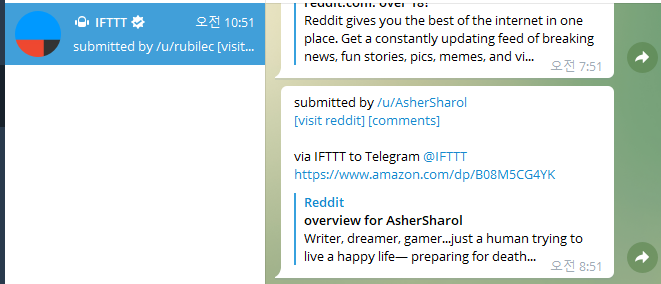 1. https://ifttt.com/ - 텔래그램으로 메시지 발송