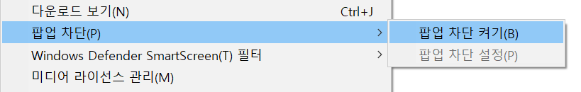 인터넷익스플로어의 팝업 차단 기능을 끈다.