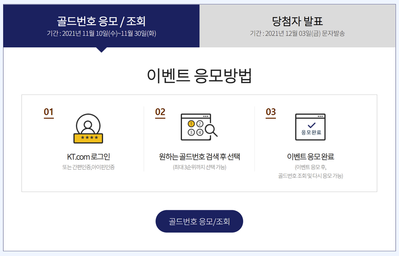 2021년 하반기 통신 3사 골드번호 추첨 안내 페이지 정리
