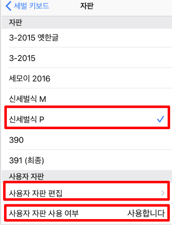 3번 단계는 신세벌식P2 자판을 보고 수정하면 됩니다.