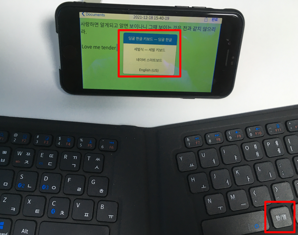 아이폰에서 신세벌식P2 블루투스 키보드 사용하는 방법