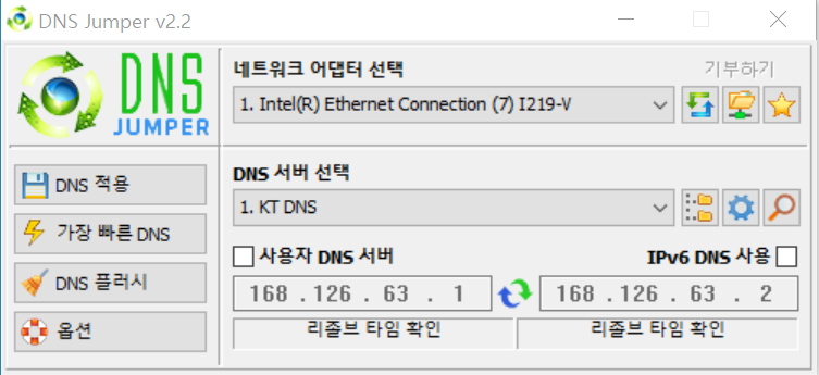 'Dns Jumper' PC 네트워크의 DNS 자동변경 프로그램 및 캐시 제거