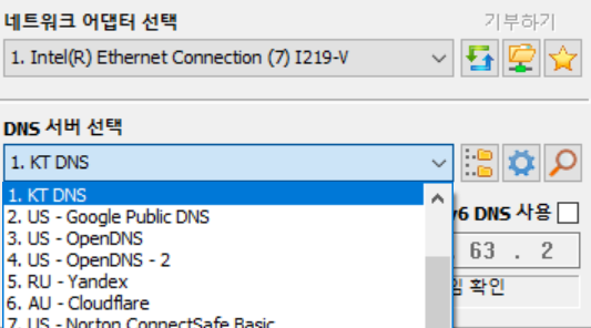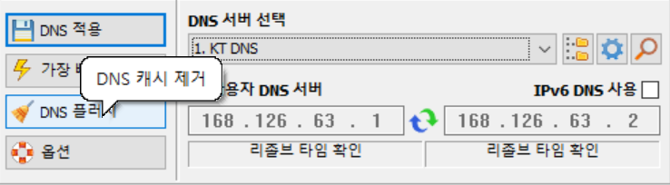 이런 여러 개의 DNS 중 원하는 DNS로 한번에 변경이 가능합니다. 변경하면서 PC에 저장된 DNS 캐시도 자동 삭제됩니다.