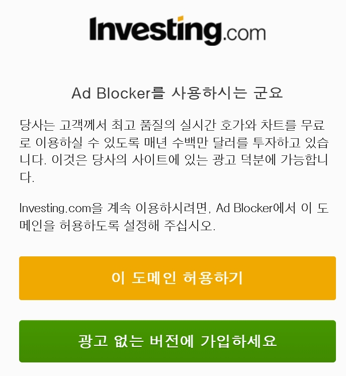 investing.com, adblock으로 차단해제 메시지 해결 방법