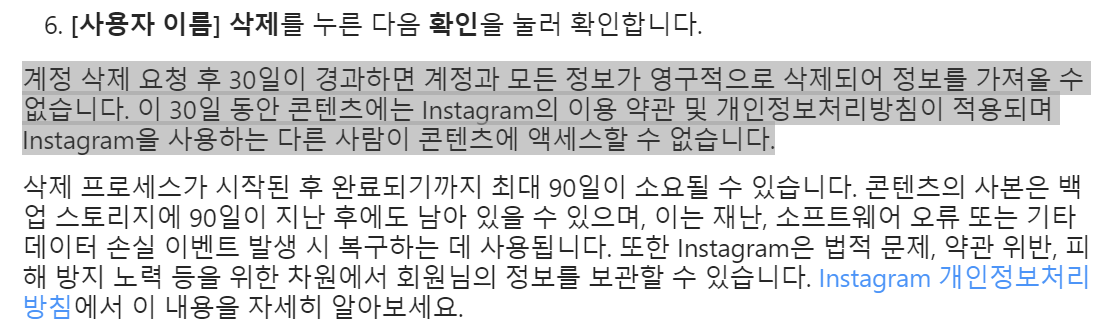 인스타그램은 복구가 불가능해야하는데 복구가 되는 것을 보니 탈퇴 즉시 데이터 삭제가 이루어지는 것이 아닌가봅니다.