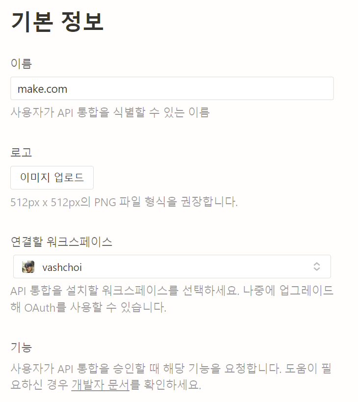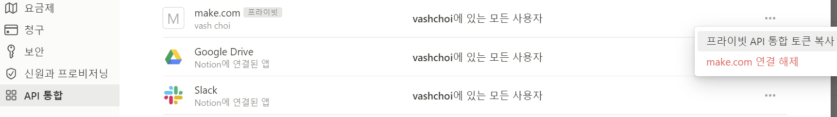 - 노션에 ‘청구서' 폴더 만들고 make.com용 API 키 생성