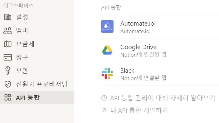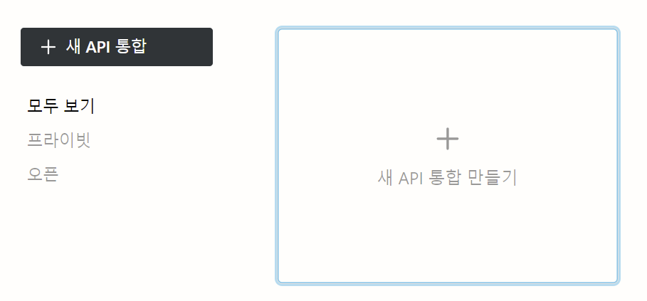 ‘API 통합'에서 ‘내 API 통합 개발하기'를 누릅니다.