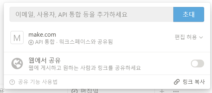 순차적으로 ‘공유', ‘초대’ 기능을 통해서 해당 폴더에 생성한 API가 읽고 쓸 수 있는 권한을 부여합니다.