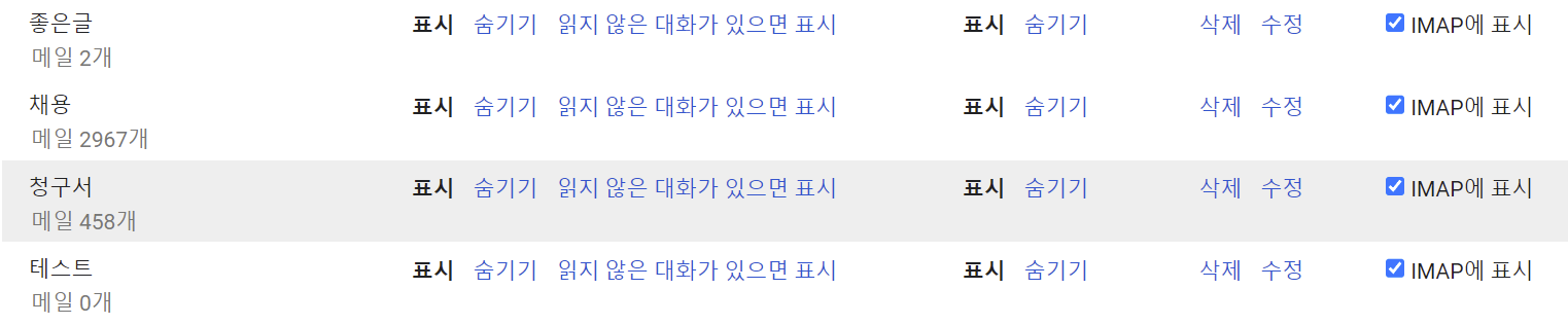 - 지메일에서 원하는 메일 분류하여 라벨지정