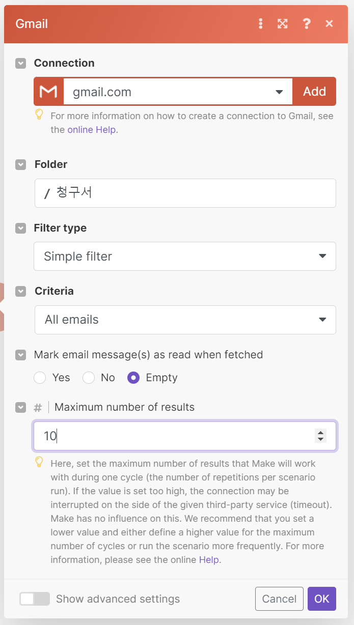 지메일로 매월 청구되는 청구서를 노션의 청구서 폴더로 자동으로 저장되게 설정해보자. make.com 이용