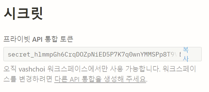 생성되는 토큰을 복사합니다. make.com 에서 사용하게 됩니다.
