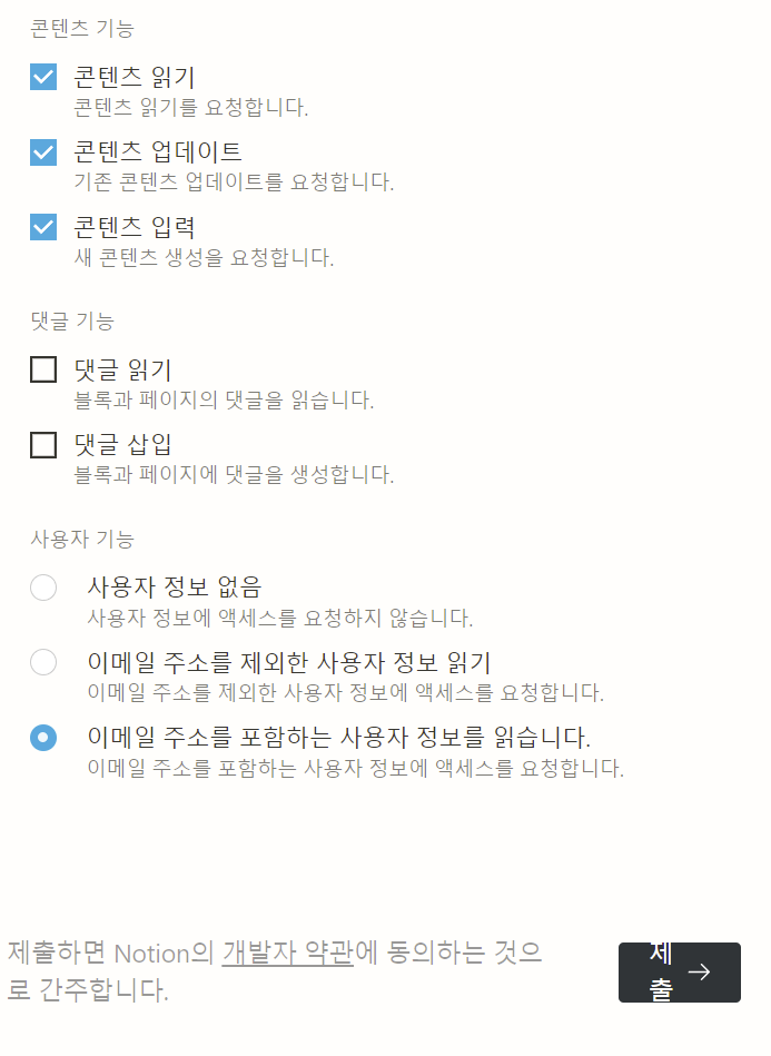 노션의 해당 폴더에 생성한 API에 대해서 접근 권한을 줘야합니다.