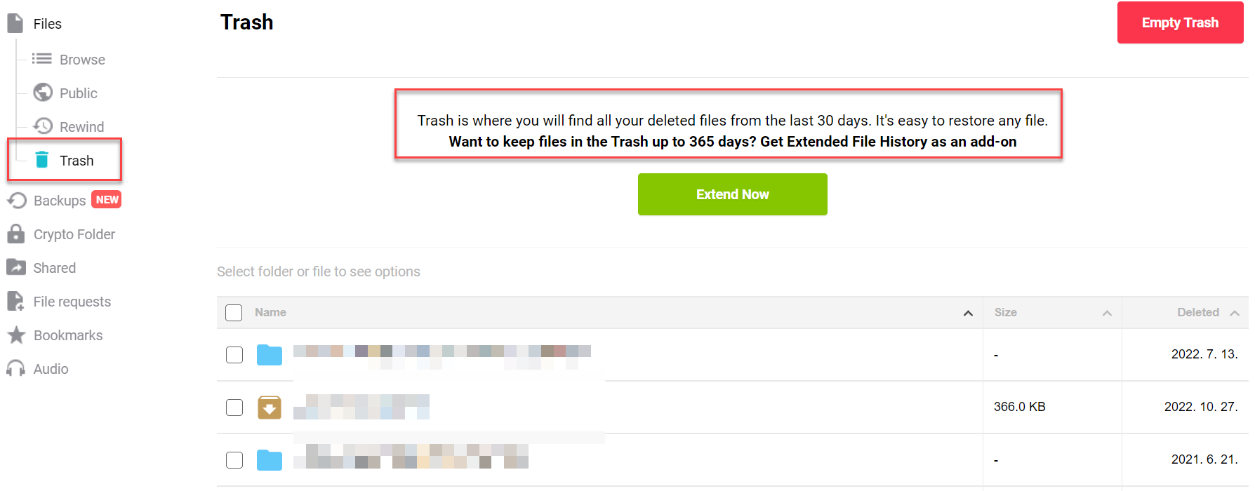 사용하면서 가장 유용했던 것은 클라우드 자체의 휴지통 기능입니다.