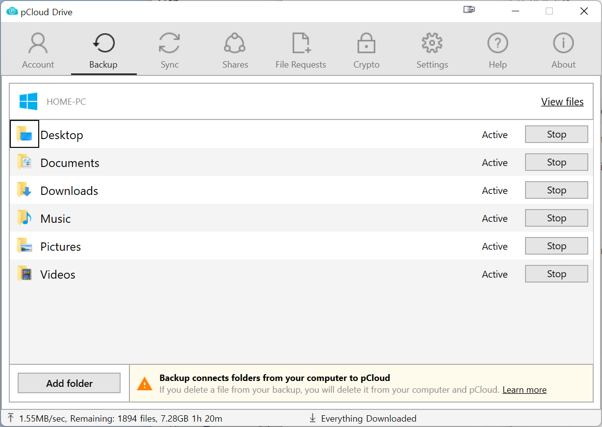 사전에 PC 백업을 활성화를 해야합니다. 단방향이 아니고 양방향 동기화기 때문에 PC의 데이터를 삭제하면 클라우드에서도 자동으로 삭제가 됩니다.