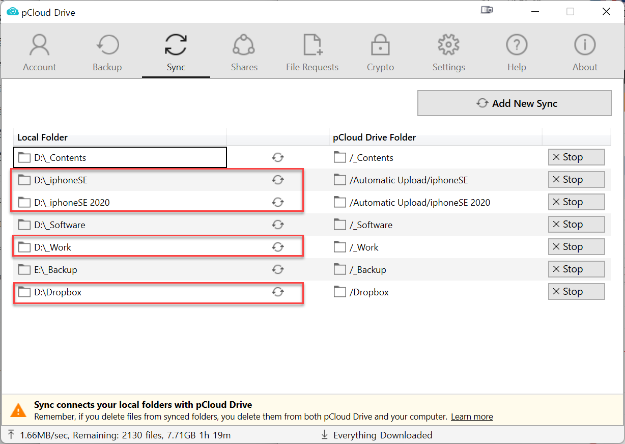 하드디스크의 특정 폴더를 클라우드로 백업 설정한 모습입니다. 단방향이 아니고 양방향이기 때문에 PC에서 삭제하면 클라우드에서도 자동으로 삭제가 되죠.