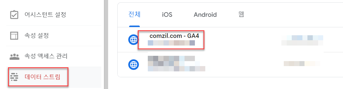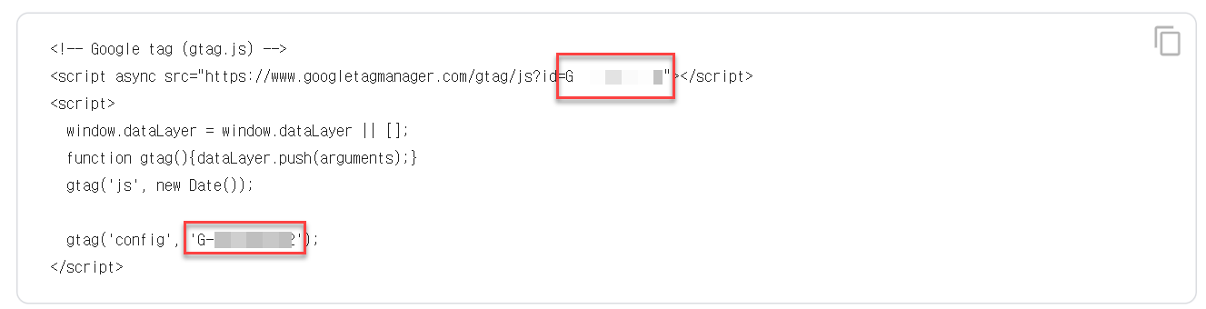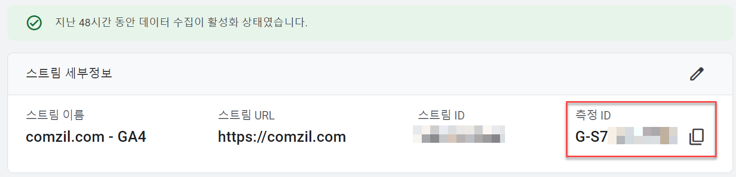 ‘측정 ID’가 구글 분석 수집 코드의 고유아이디가 된다.
