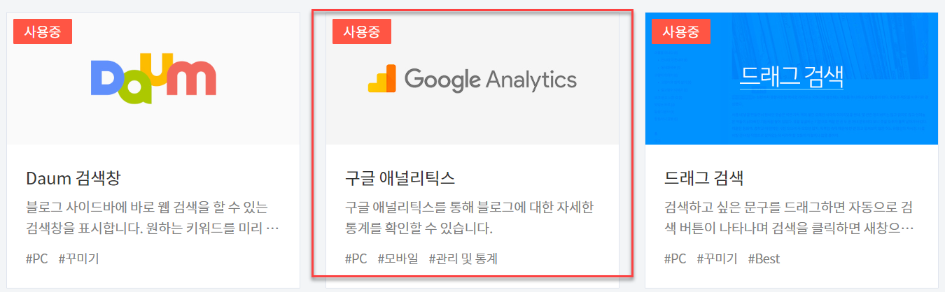티스토리의 플러그인에서 넣어본 모습이다.