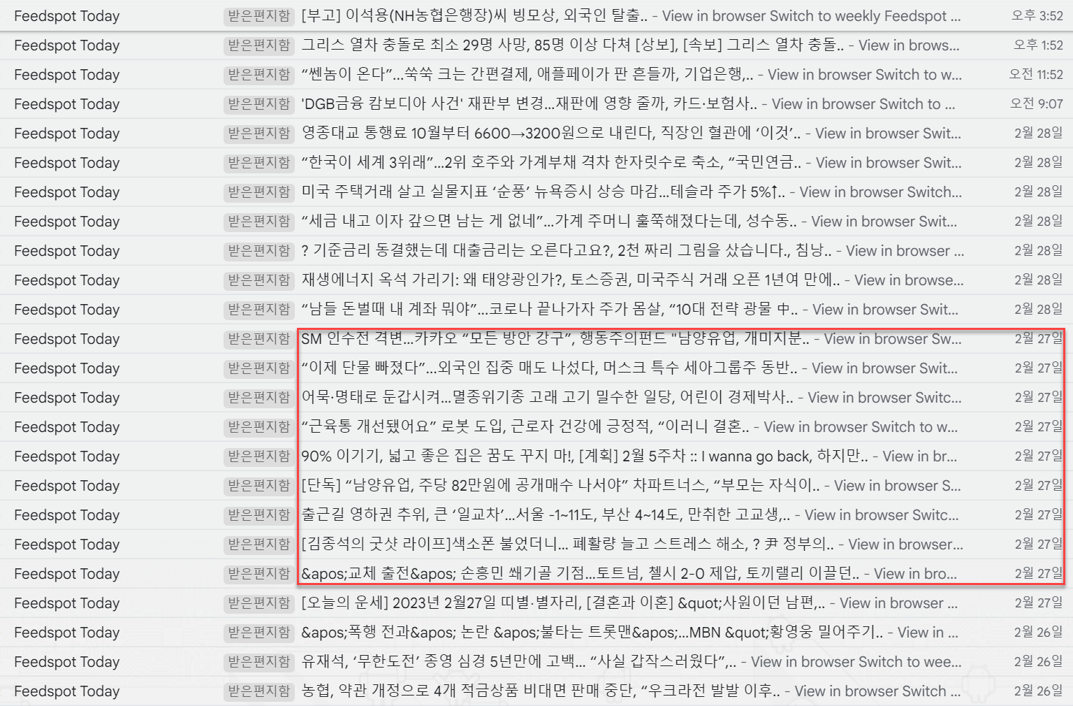 관심 있는 기사나 주요 블로거의 글을 모니터링 하는 방법 중 가장 좋은 것은 주력으로 사용하는 이메일 계정으로 받아 보는 방법이 있다.