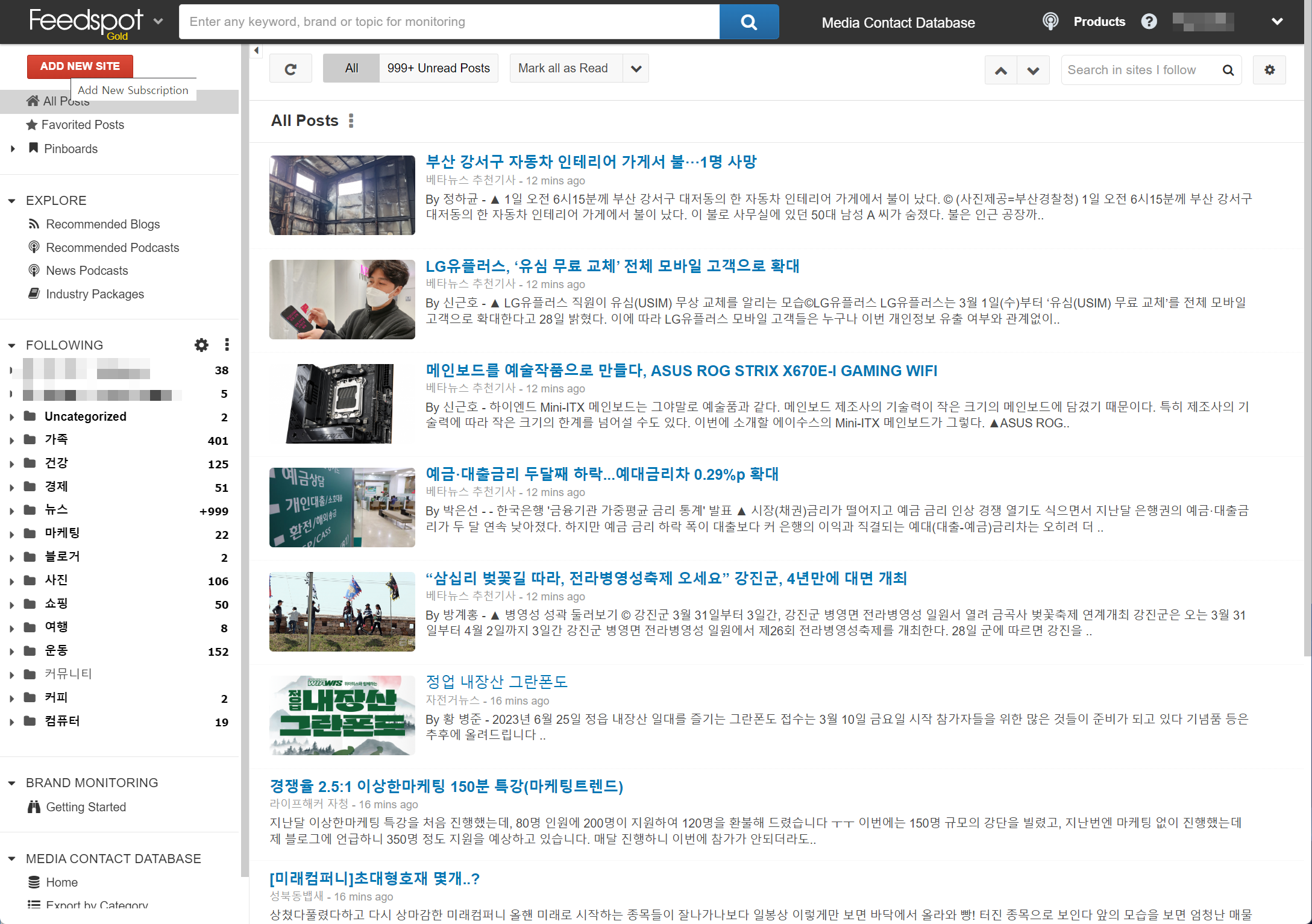 - 피드 추가 및 카테고리 정리 메인 이용