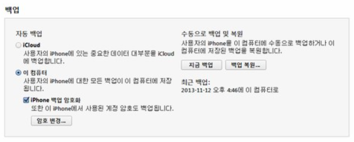 - 아이튠즈 설치 후 기존 아이폰SE2 풀백업(iPhone 백업 암호화 체크 후 백업 해야 함)