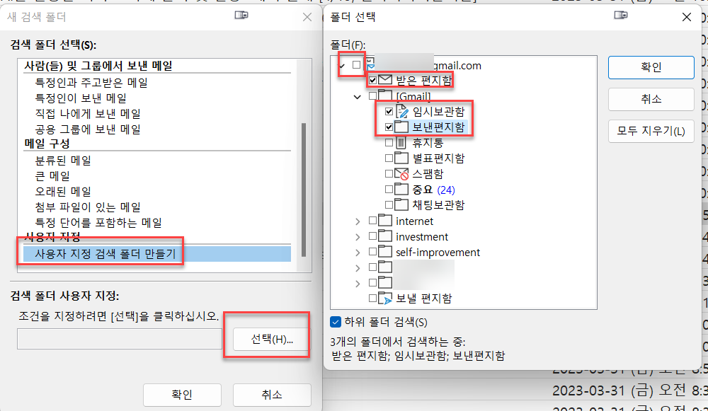 - 검색 폴더 사용자 지정 선택 버튼 클릭