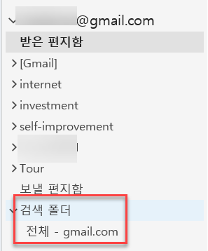 검색폴더에 추가한 폴더가 생성된다. 해당 폴더를 즐겨찾기에 추가해서 사용하면 된다.