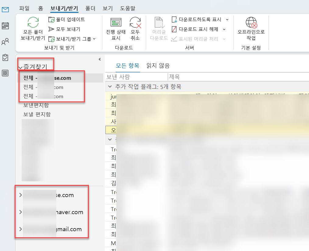 아웃룩에서 전체 메일함 사용하는 방법