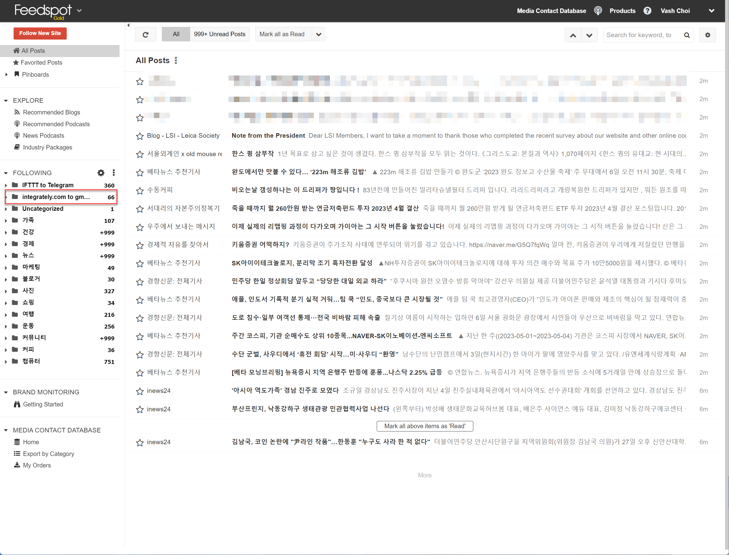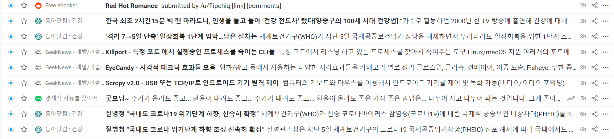 이리 저리 사용해보니 입맛에 가장 맞는 도구는 아이노리더다. 하지만 rss 추가 제한이 있다.