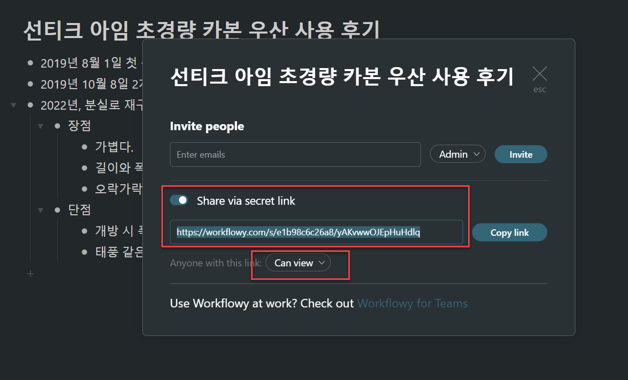 지금도 워크플로위를 계속 사용 중이다. 어떤 컨텐츠에 대한 아이디어가 정리가 안 될 때 워크플로위에서 하나 하나 쓰다 보면 어느새 목차가 생성 된다. 사실 목차가 나오면 세부 내용은 저절로 채워진다.