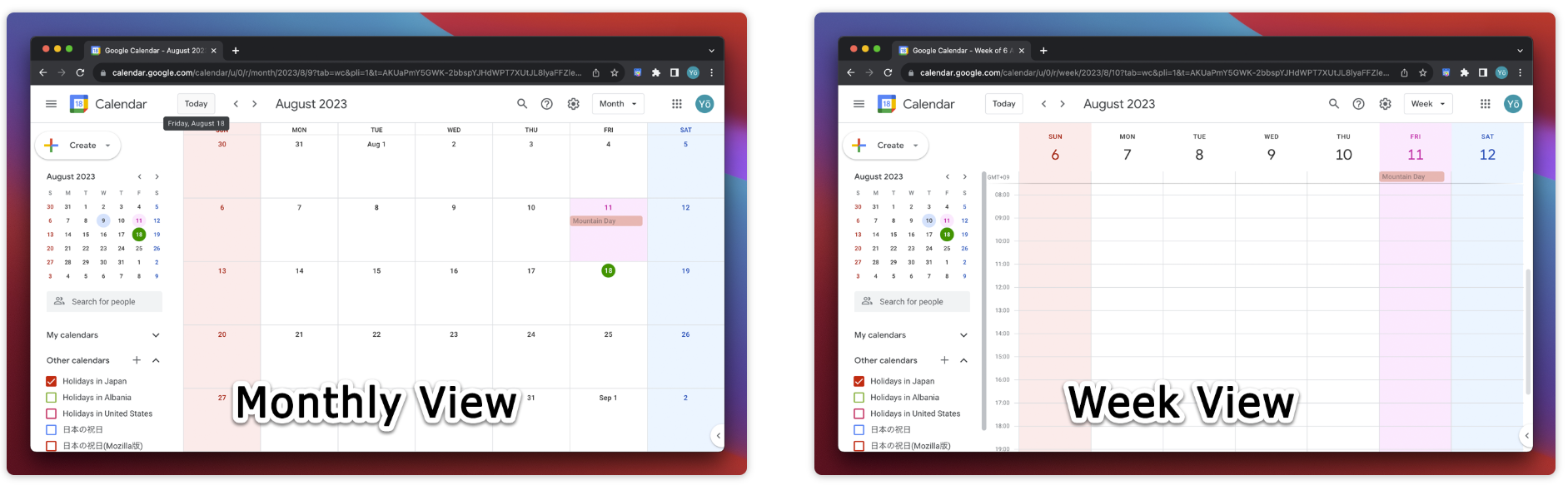 Google 캘린더에서 오늘, 일요일, 토요일, 기타 요일 문자 색과 배경색을 좋아하는 색상으로 변경할 수 있습니다.