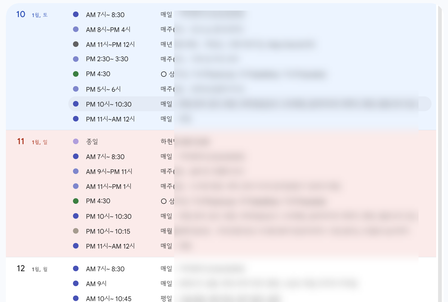 사용해보니 오늘 일정이 녹색으로 반전되는 게 가장 좋다. 명확하게 내일 일정과 구별되기 때문이다.