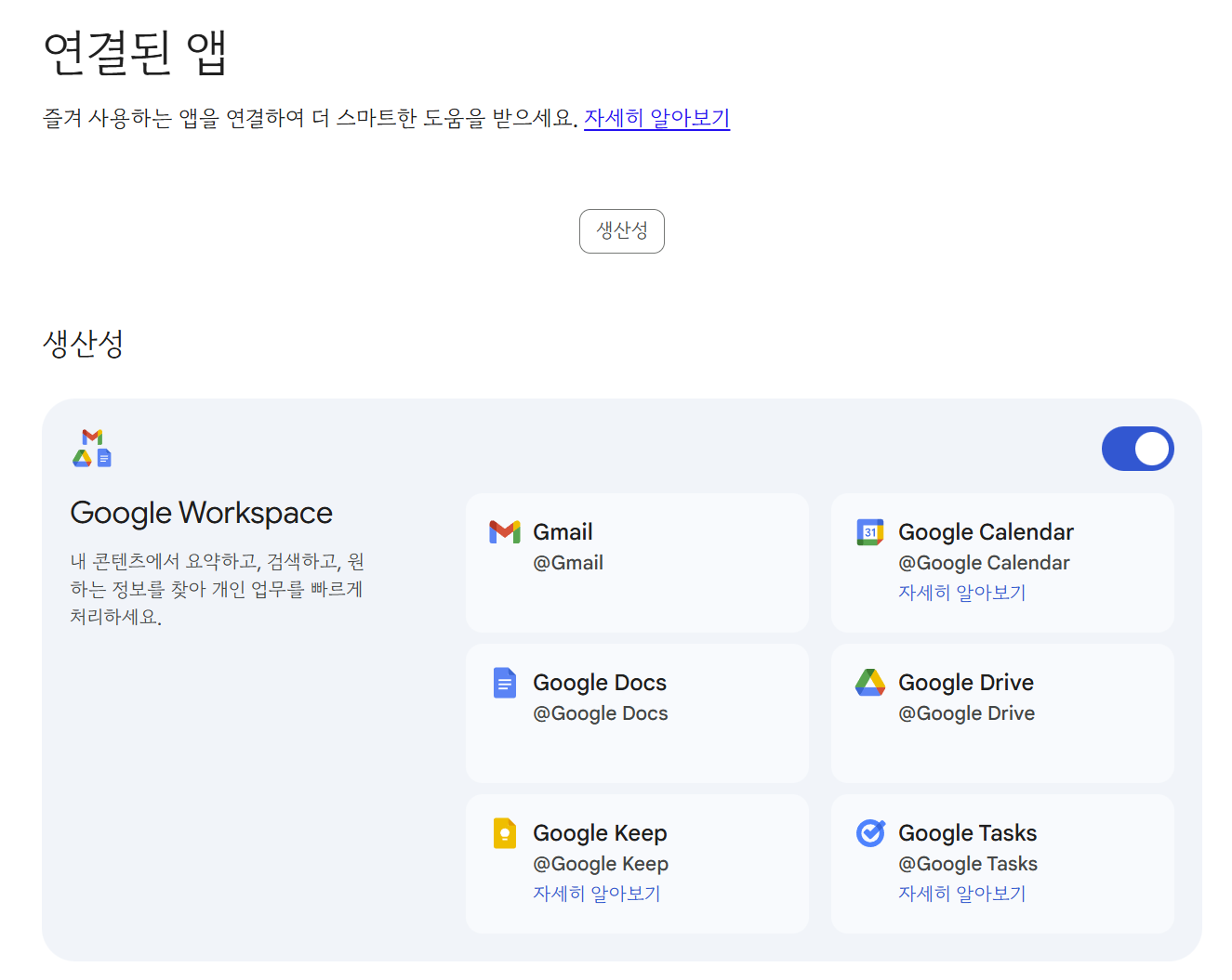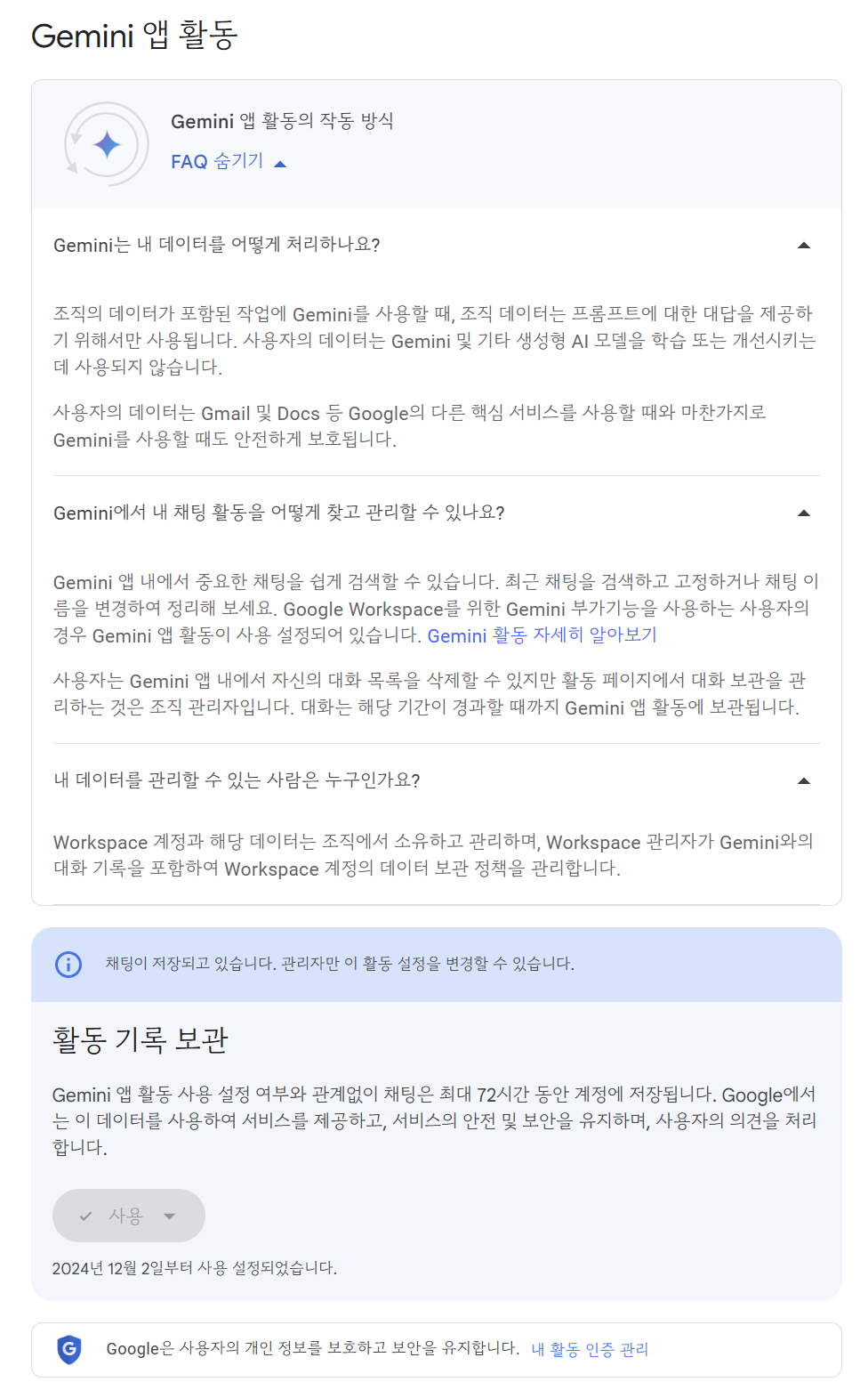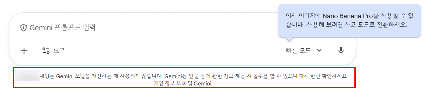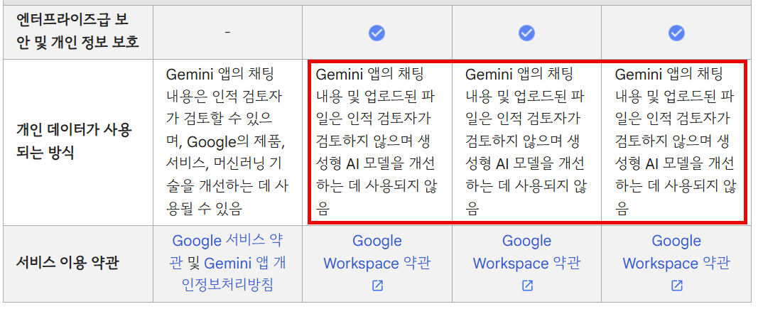 구글 워크스페이스 계정은 입력 데이터를 학습 및 외부 공유를 하지 않는다고 명시되어 있다.