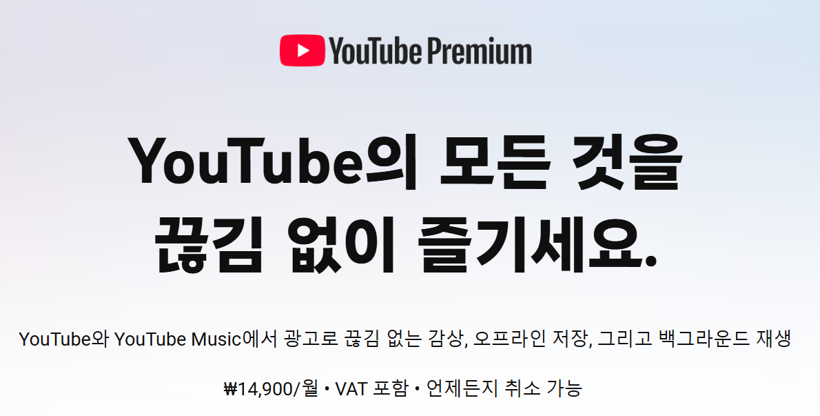 유튜브 프리미엄 요금제는 한달에 1만5천원 정도로 상당히 비싼 편이다.