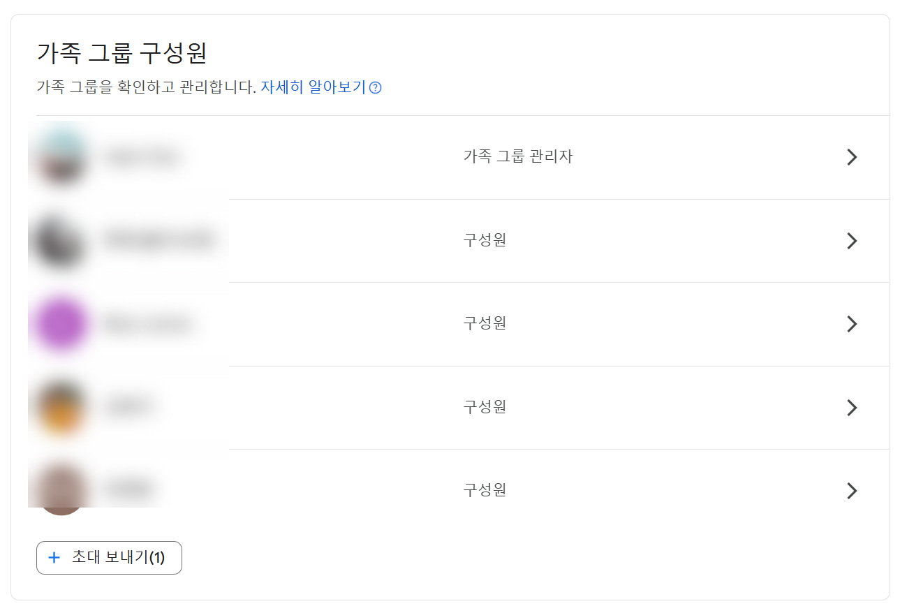 가족 그룹 구성원은 본인을 제외하고 5명까지 추가할 수 있다.
