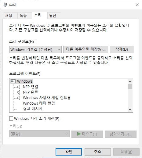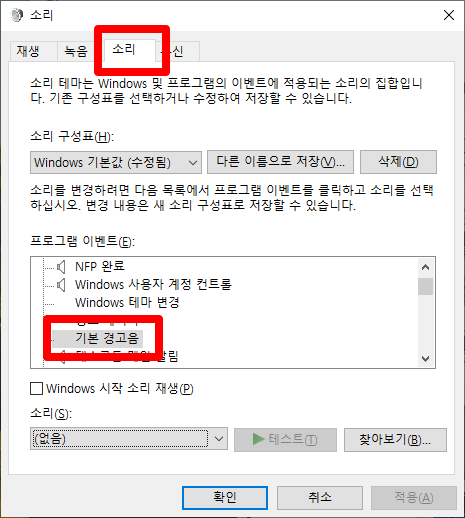 #윈도우 #기본경고음 #소리제거 #자판소리